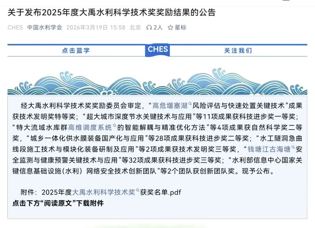 (中国水利学会官方公众号页面)